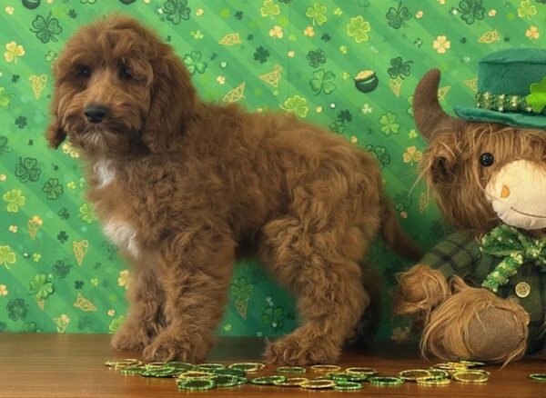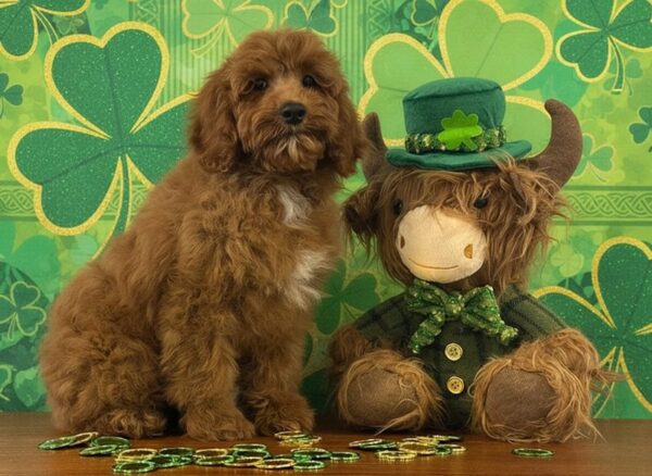 Dob: 11/19/25 – Ready: 1/21/26! – Color: Apricot & White Wavy coat – Mature Wt.: 15-25lbs. – Parents: Cyrill & Pal