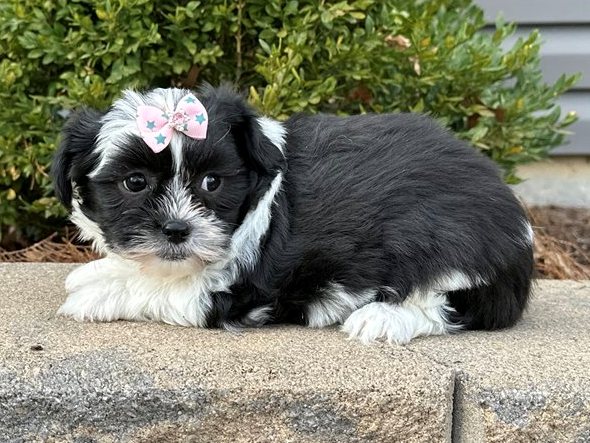 Meet Cocoa, our sweet female Shichon puppy with an adorable teddy bear face and a loving personality. Cocoa is playful, curious, and enjoys spending time exploring and playing with her toys. When playtime is over, she loves to curl up for cuddles and be close to her people.